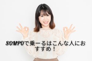 > サービスに不安がある方でも、まずはSOMPOで乗ーるの詳細を確認してみて、あなたに合うかどうか検討してみてください。[公式サイトはこちら]